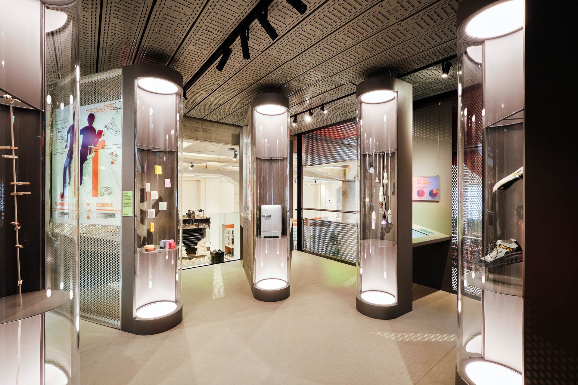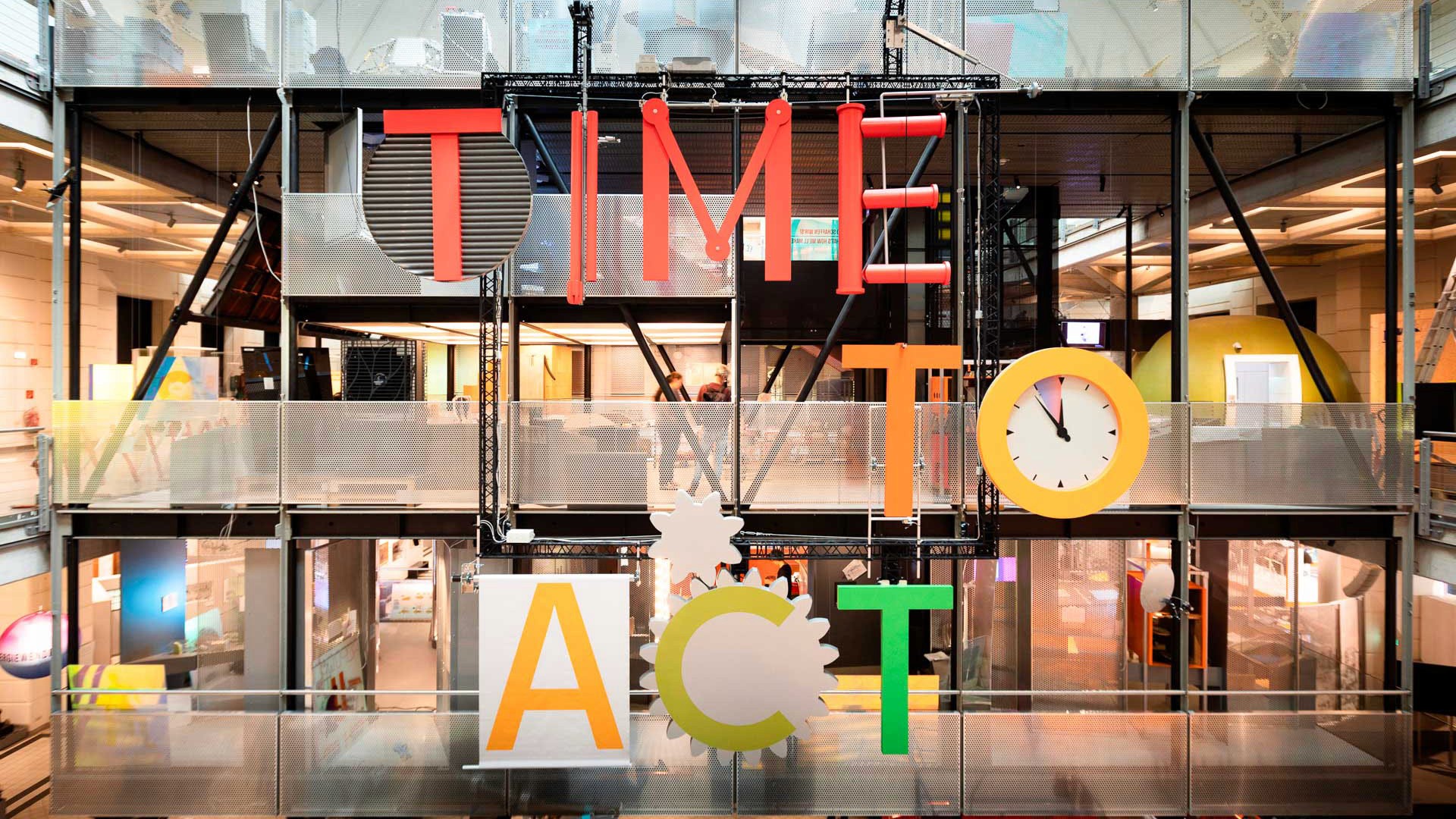 Energy Transition A Race Against The Time. From The Thinking_Forward_Exhibition Series The red-hot exhibition presents the complex and dynamic connections between the climate crisis and the energy transition on five floors. It shows new technologies and strategies that open up prospects for a sustainable future. The aim of the 450m² exhibition is to empower visitors to actively participate in the climate debate. The basic design concept is based on the formal interpretation of the desired “positive twist” that the exhibition is intended to give visitors. In terms of design, a technical-futuristic laboratory is designed. Minimalistic and clear in terms of materiality and design language, the furniture is combined with the clever use of light and translucency to create a harmonious overall picture. The transparency and openness of the design increases from floor to floor. The spectacular cybernetic installation on the façade is cited in the form of interactive stations on all floors and creates spatial and content-related links between the chapters. Exhibition design: Acquisition, concept sketch, preliminary design, design planning, execution planning, preparation of specifications, solicitation of quotations, artistic direction, project, cost and time management;