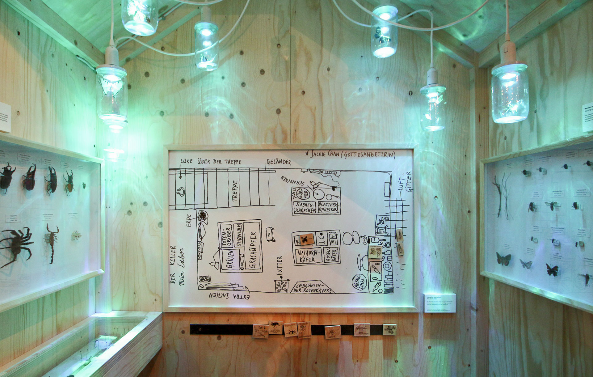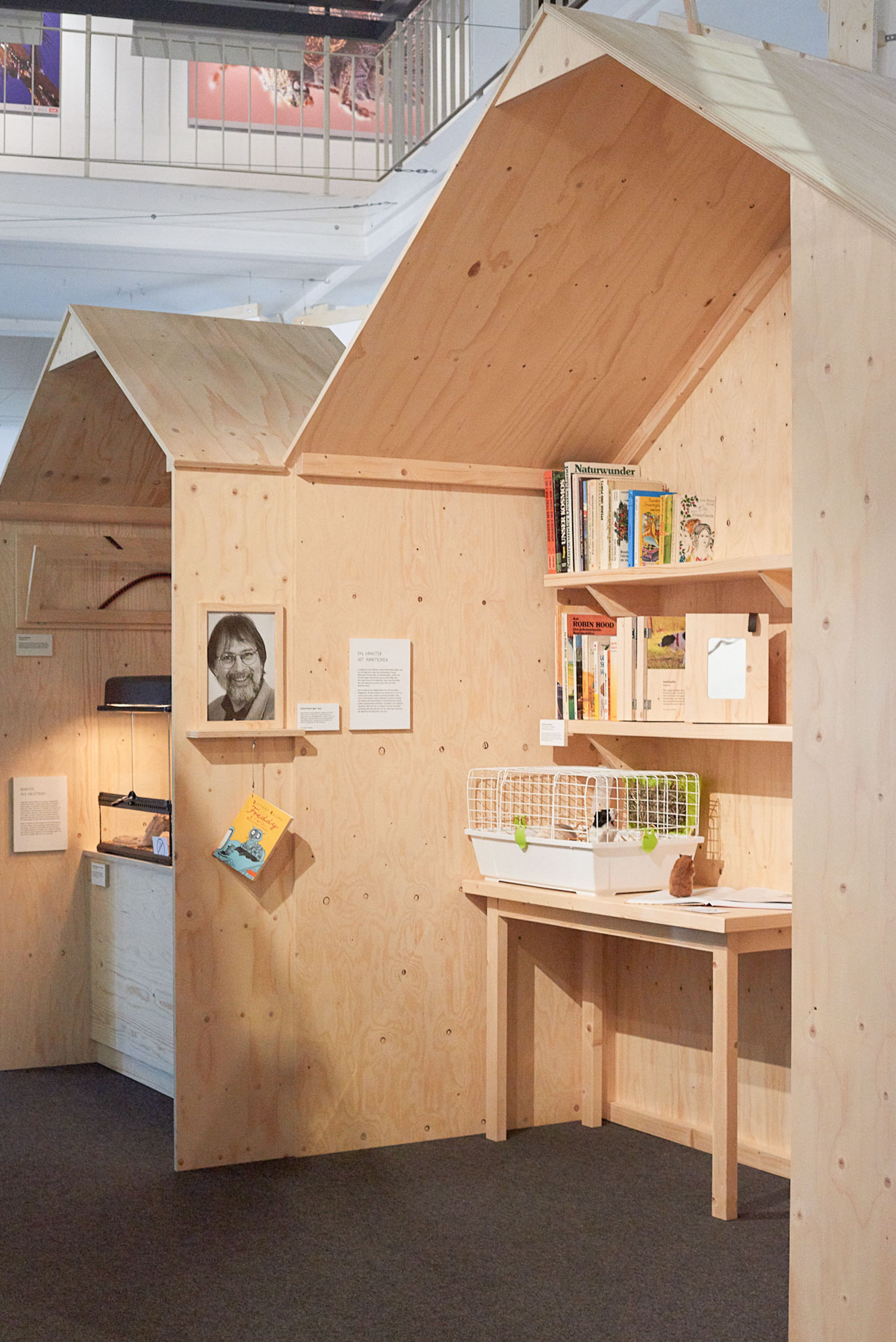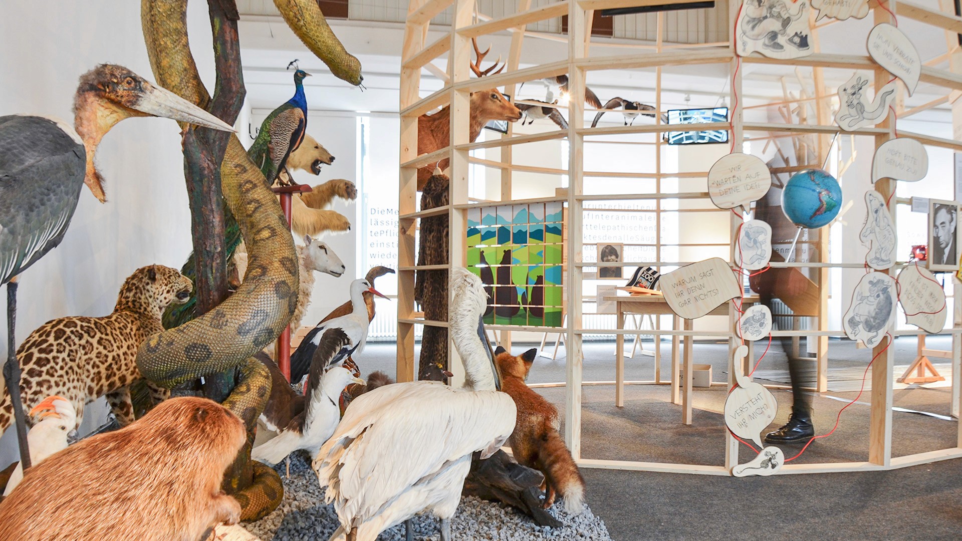 Tell me about the animals Animals in children's literature and in nature Parallel to the 2018 Children's Book Fair in Oldenburg, the Museum Natur und Mensch organized a special exhibition on 400 m² entitled “Tell me about the animal - animals in children's literature and in nature”. The exhibition is divided into scenes from children's books, which are brought to life through pictorial and spatial interpretations. Over 250 objects and animal specimens from the museum's collection complement the scenes. The literary stories are complemented in a playful and interactive way by natural history and scientific statements on the life of the animals depicted in the books in nature and their relationship to humans. The result is a participatory, dialog-oriented exhibition inspired by stage productions and children's theater. Natural, recyclable and untreated materials from stage construction were used. The space-creating elements were produced in the museum's own workshop. Exhibition design: design planning, executive planning, technical and artistic supervision of the execution, acceptance and handover process, project management: cost and time management;