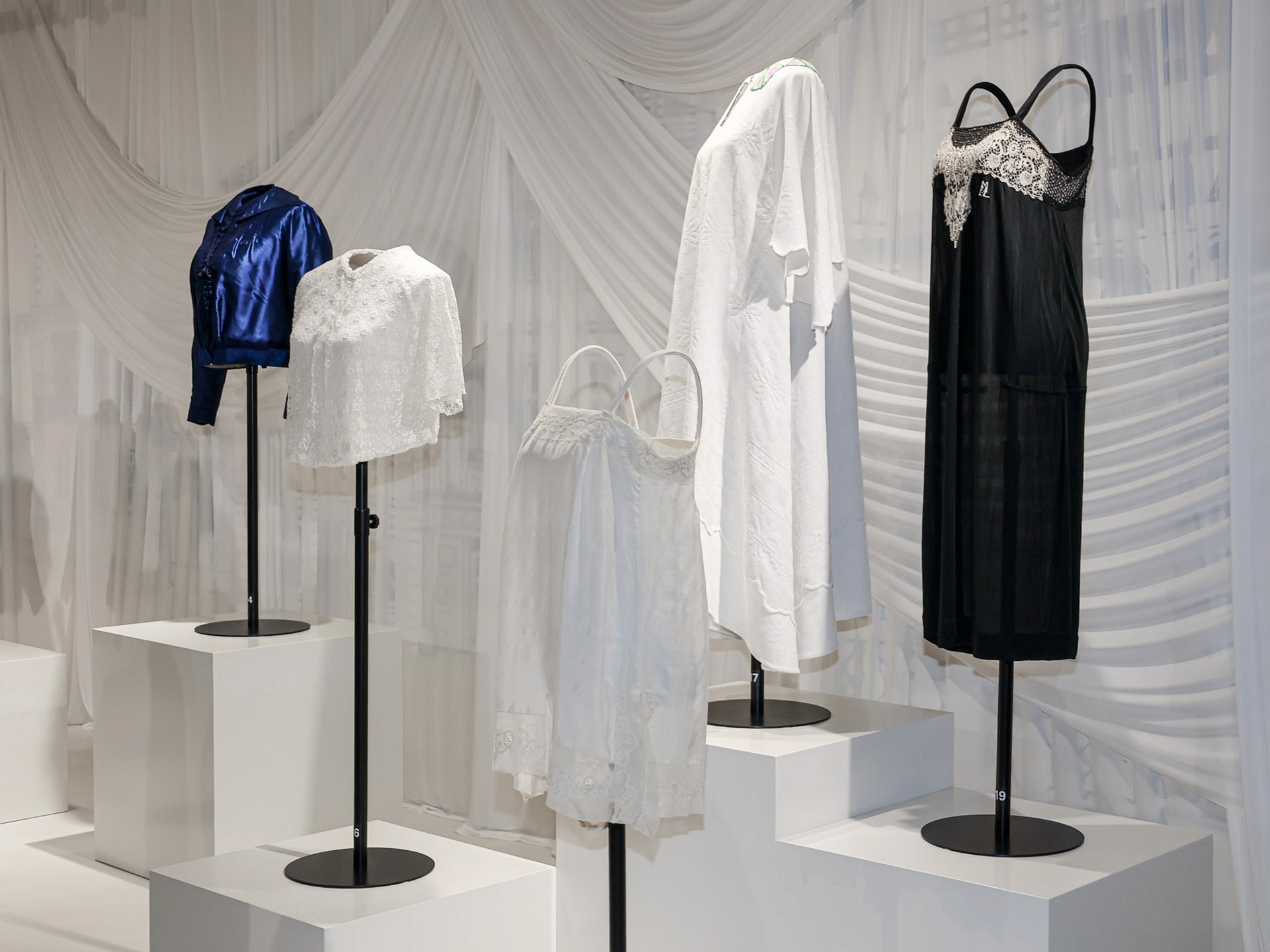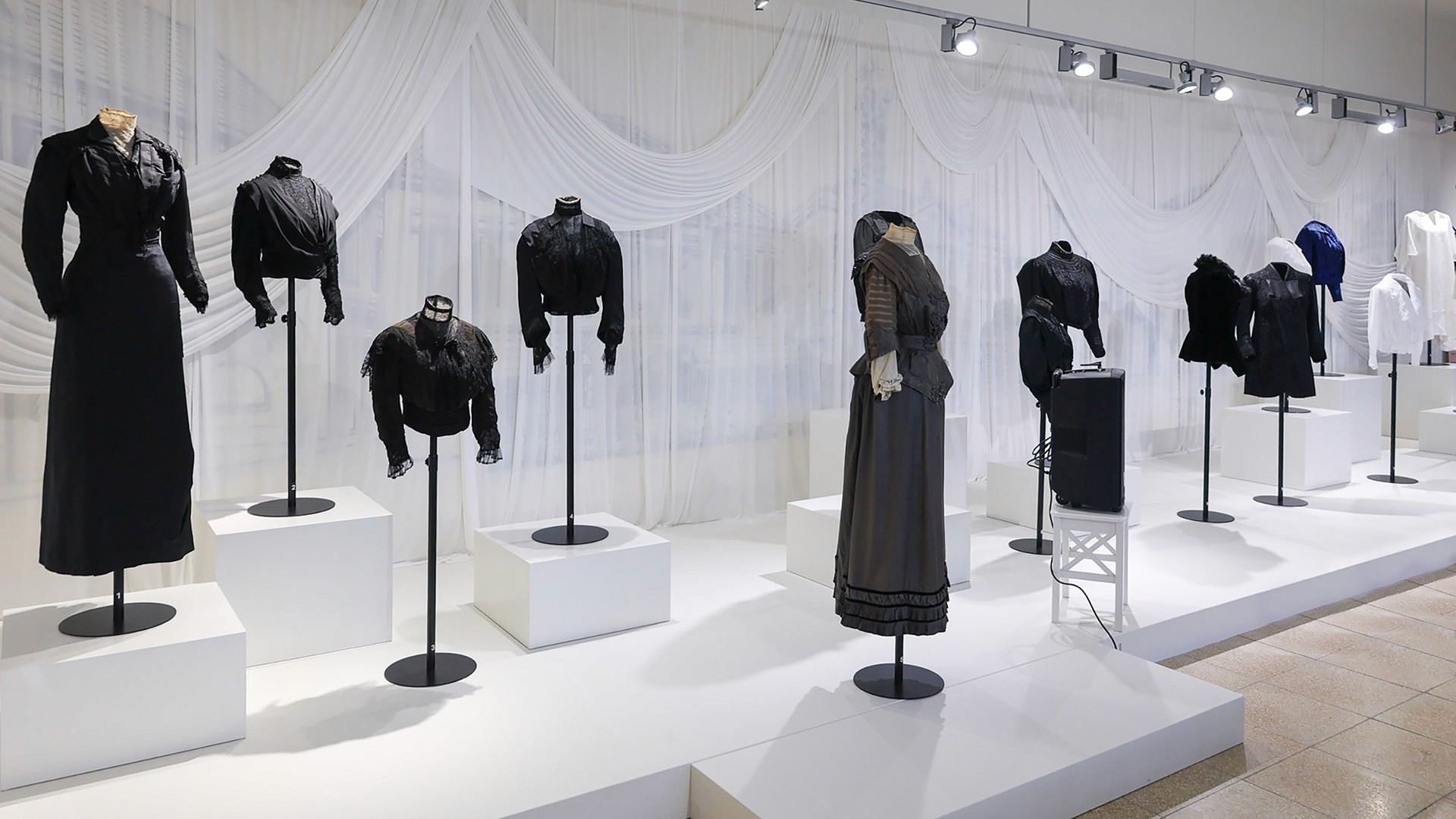 Die neue Sonderausstellung im Kaiser-Jubiläumssaal des Kaiser-Franz-Josef-Museums in Baden zeigt historische Kleidungsstücke aus der Sammlung Werkmann aus dem Zeitraum vom Ende des 19. Jahrhunderts bis in die 1920er Jahre. Der Sonderausstellungsraum im ersten Stock des prächtigen Jugendstilgebäudes wurde vollständig neu gestaltet und an die konservatorischen Anforderungen der Exponate angepasst. Die 110 m² erstrahlen in einer ruhigen, hellen und einheitlichen Farbgebung, die die edlen Materialien und aufwendigen Fertigungstechniken der Exponate gezielt hervorhebt. Die Exponate werden in umgestalteten Bestandsvitrinen und auf einer neuen Podestlandschaft in Szene gesetzt. Diese ist auf unterschiedlichen Höhen konzipiert und kann aufgrund ihrer modularen Bauweise unkompliziert nachgenutzt werden. Das Ensemble ist in eine Hintergrundinszenierung aus gerafften Stoffbahnen in mehreren Ebenen eingebettet, die an gezielten Stellen eine bestehende Illustration der Stadt Baden durchscheinen lässt. Sitzgelegenheiten und der Blick aus den freigelegten Fenstern erhöhen die Aufenthaltsqualität, während eine interaktive Station zum Reflektieren anregt.