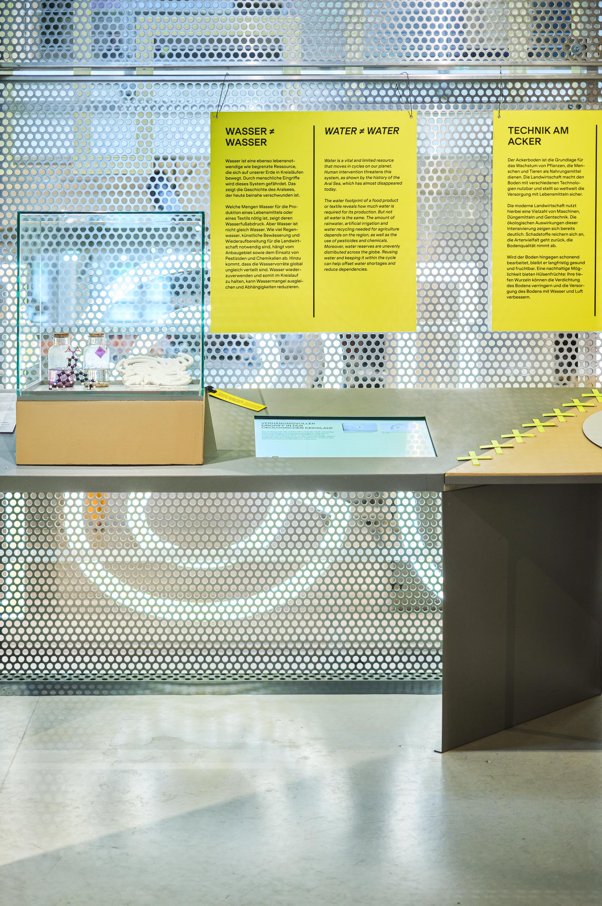 Die Ausstellung zur Kreislaufwirtschaft Ein Projekt in Zusammenarbeit mit von Grote GmbH, Ausstellungen - Museen - Innenräume Das Thema ist heute aktueller denn je. Dies zeigt die Sonderausstellung im Technischen Museum Wien auf 450m² und fünf Ausstellungsebenen. Unter dem Motto „Unser Umgang mit Dingen im Sinne des Ressourcenverbrauchs” werden alltägliche Themen wie Ernährung, Kleidung, Wohnen und Unterhaltung beleuchtet. In Form von innovativen Forschungsprojekten werden alternative Perspektiven eröffnet, wie Ressourcen nachhaltiger genutzt werden können. Kreislauffähigkeit, Nachhaltigkeit und Ressourcenschonung wurden zu Beginn als grundlegende Parameter für die Gestaltung definiert. In diesem Sinne wurde das Mobiliar der Ausstellung „Energiewende” weitergenutzt, umgearbeitet und neu kombiniert. Außerdem wurde die vorhandene Technik, die Hauben sowie der gesamte Bestandsfundus des Museums genutzt und eingesetzt. Neuanschaffungen wurden auf ein Minimum reduziert und aus nachhaltigen Materialien gefertigt. Zudem wurden sie modular konzipiert, sodass sie zukünftig in den unterschiedlichsten Kontexten eingesetzt werden können. So entstand eine exklusive Optik, bei der farblich akzentuierte Verbindungselemente die Stellen hervorheben, an denen Altes und Neues zusammentreffen. Ausstellungsgestaltung: Akquise, Konzeptskizze, Vorentwurf, Entwurf, Ausführungsplanung, Erstellung der LV's, Beratung bei Vergabe, künstlerische Oberleitung, Projektleitung: Kosten- und Zeitmanagement;