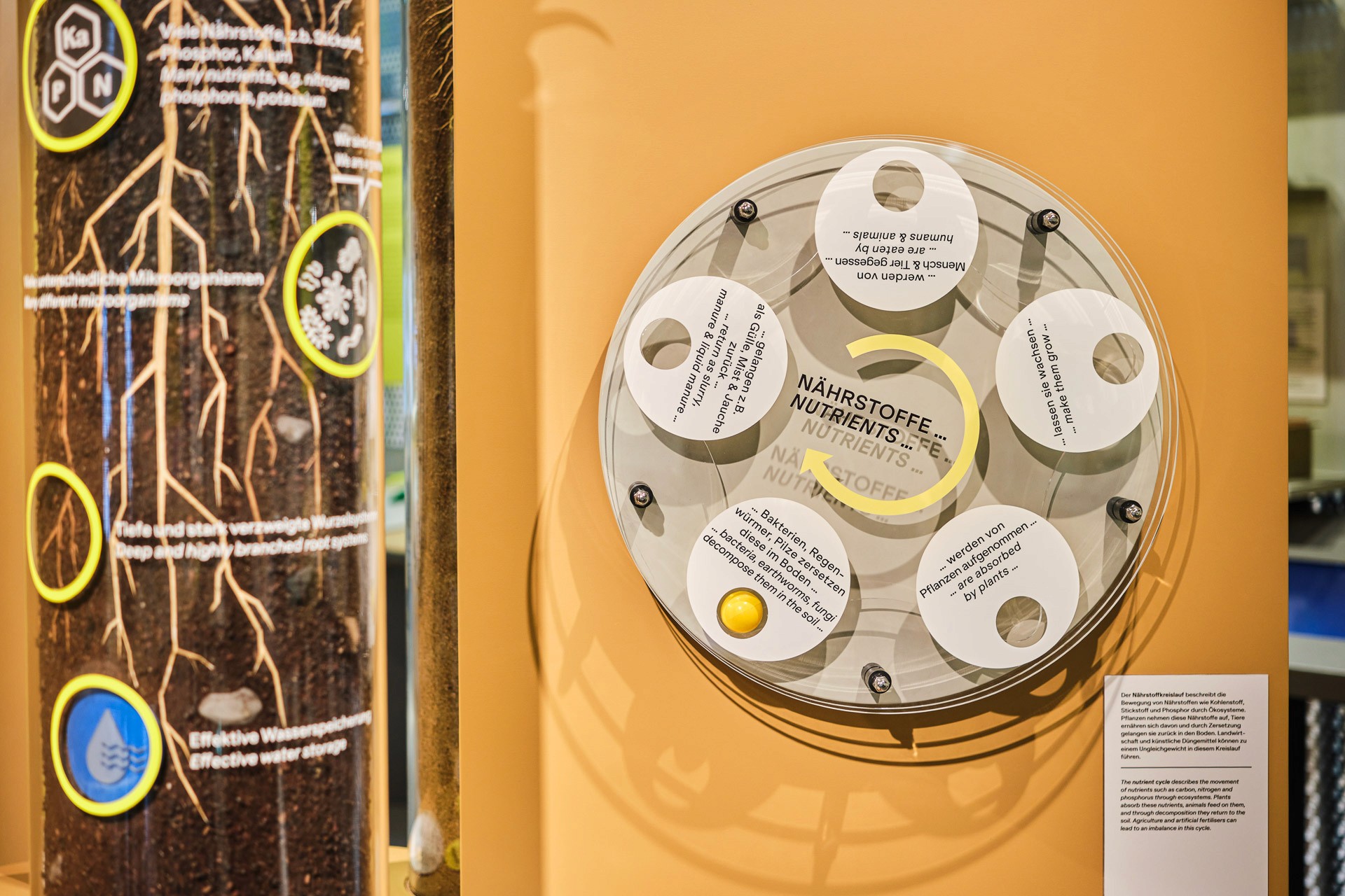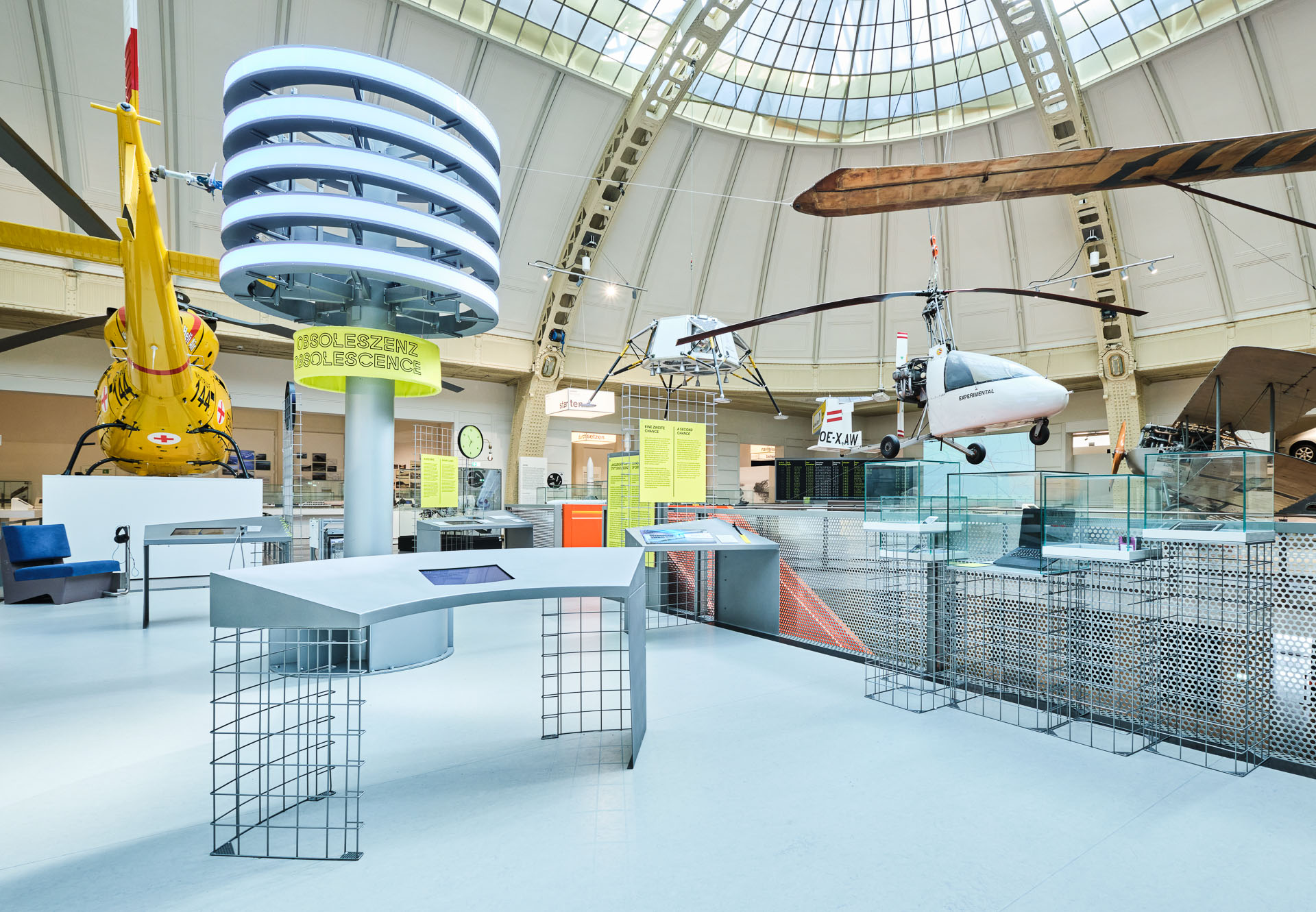 The exhibition on the circular economy The topic is more relevant today than ever. This is demonstrated by the special exhibition at the Vienna Museum of Technology on 450m² and five exhibition levels. Under the motto “Our use of things in terms of resource consumption”, everyday topics such as food, clothing, housing and entertainment are highlighted. Innovative research projects open up alternative perspectives on how resources can be used more sustainably. Circularity, sustainability and resource conservation were defined at the beginning as fundamental parameters for the design. With this in mind, the furniture from the “Energiewende” exhibition was reused, reworked and recombined. In addition, the existing technology, the hoods and the museum's entire inventory were used and deployed. New acquisitions were kept to a minimum and made from sustainable materials. They were also designed to be modular so that they can be used in a wide variety of contexts in the future. The result is an exclusive look in which color-accented connecting elements highlight the places where old and new meet. Exhibition design: acquisition, concept sketches, preliminary design, plan of design, execution planning, solicitation of quotations, counseling in the awarding of contracts, artistic direction, project management: cost and time management;