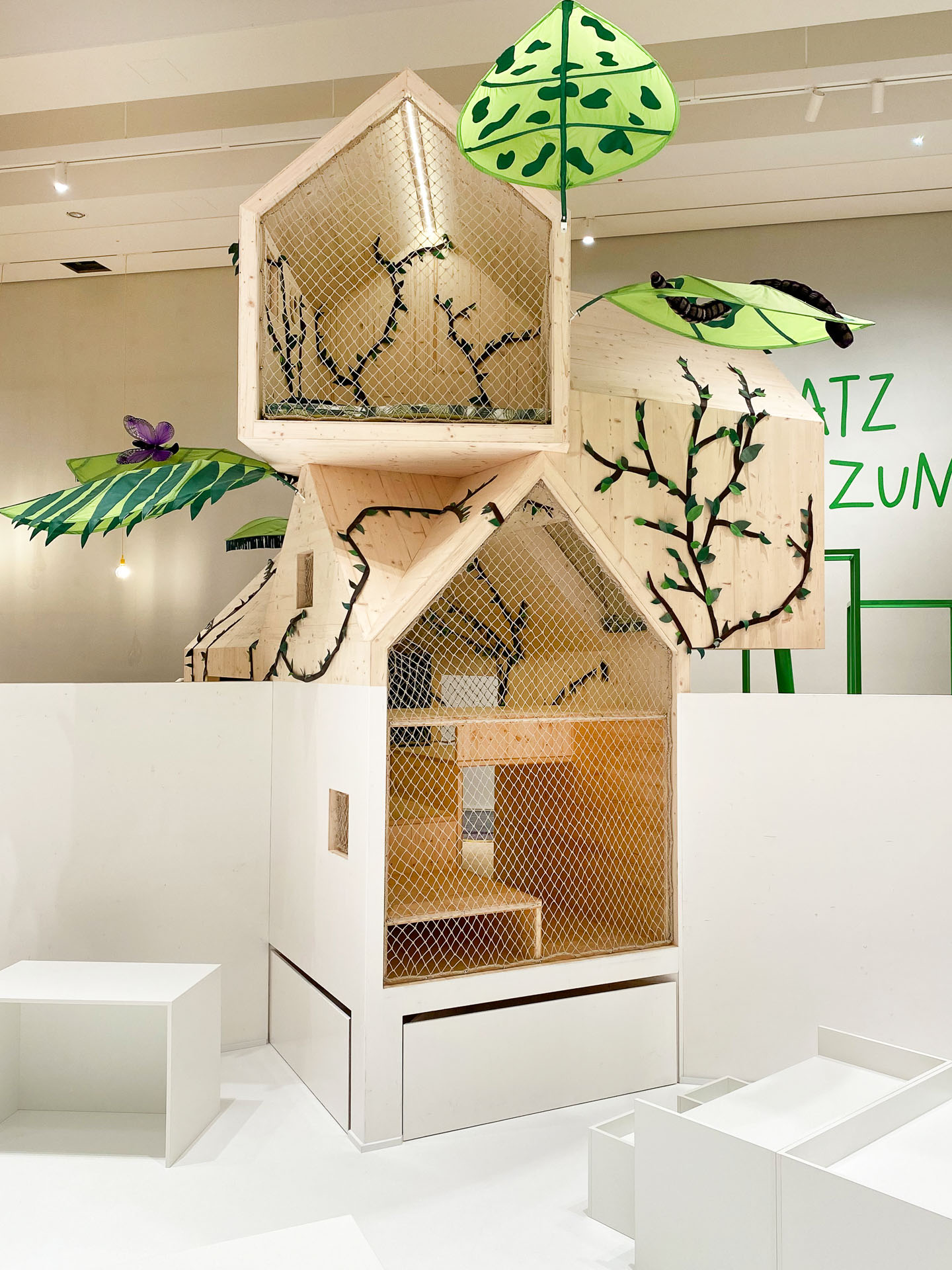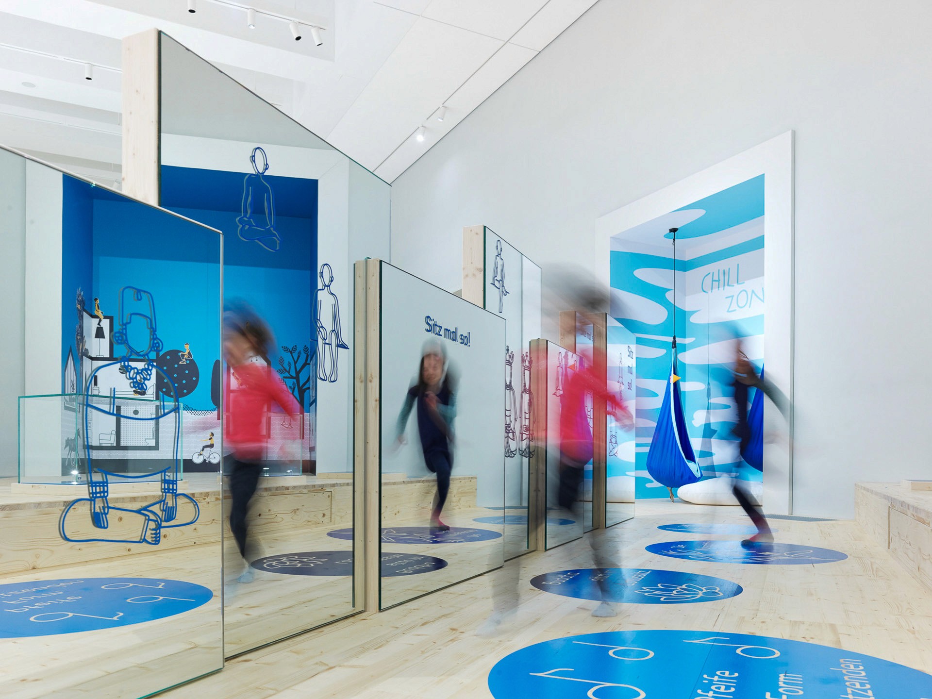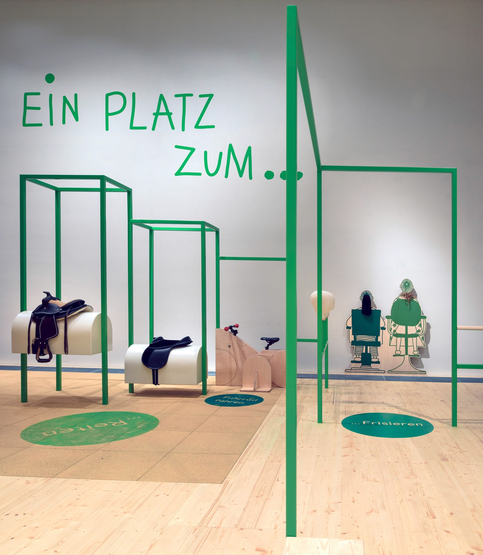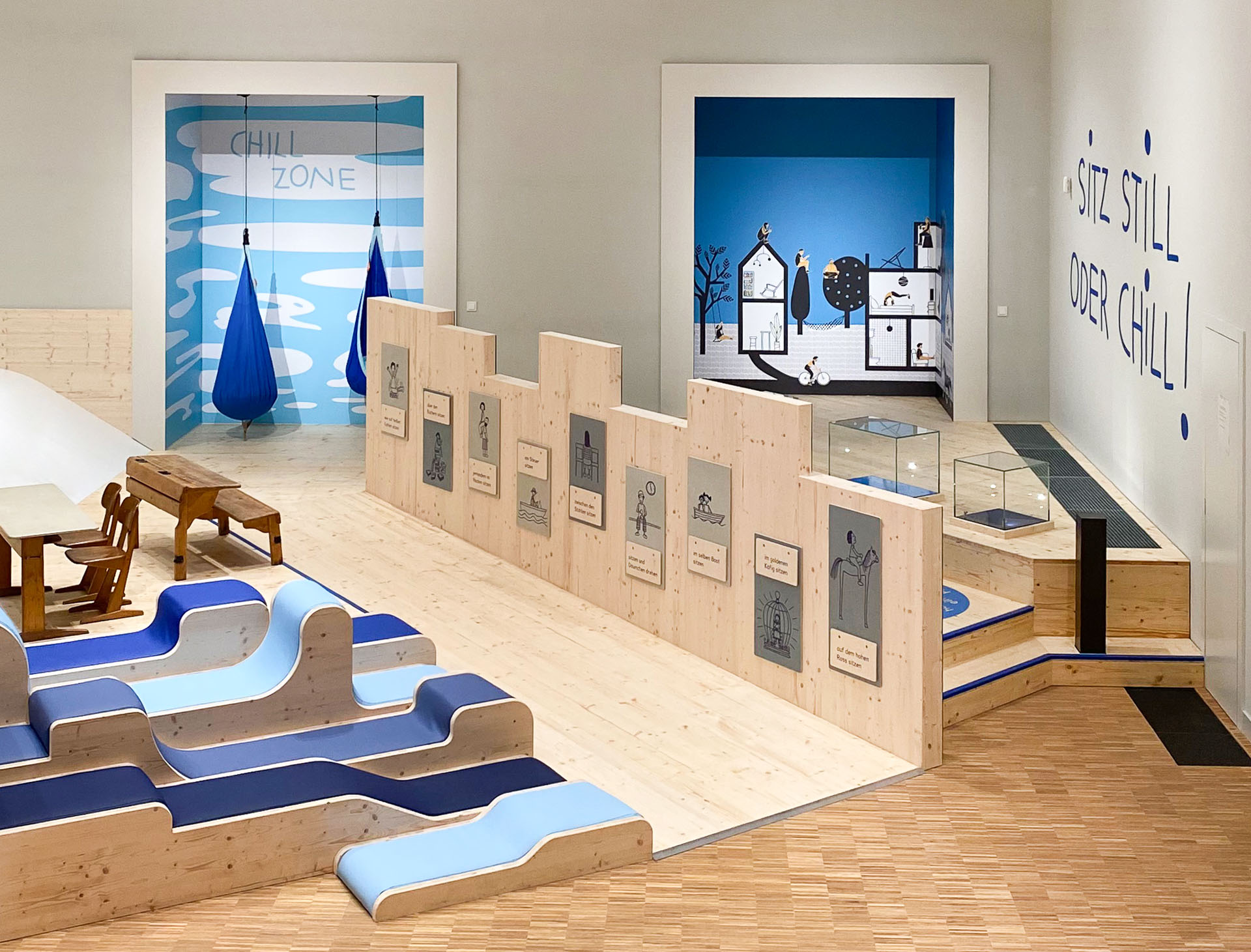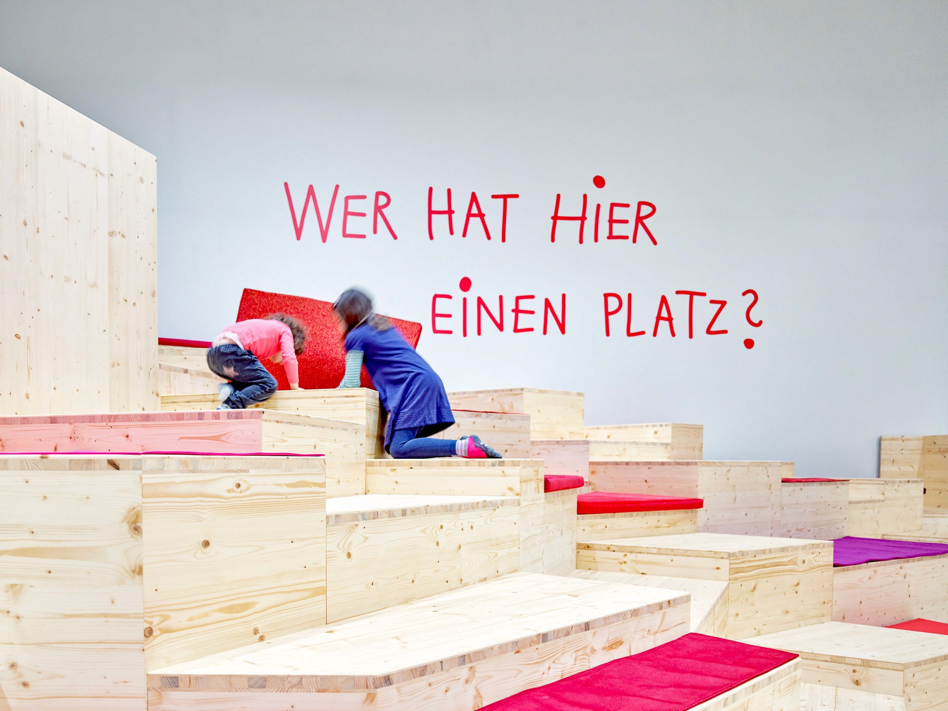 Have a Seat! An exhibition about sitting, taking a seat and making space for children and families The special exhibition for children aged 3 to 10 and families at the Humboldt Forum Berlin revolves around historical and reconstructed objects on which you can take a seat. The exhibition is divided into four thematic areas that focus on different levels of meaning of sitting. The areas are arranged around a central, blank work space: A place for active design. In line with the needs of the target group, accessible hands-on objects play a central role in learning, discovering and playing. A landscape of ramps, platforms and installations made of wood develops through the space and creates caves, interiors, tree houses, slides and much more, on which children can move horizontally and vertically and explore content in a multi-sensory way. Graphic illustrations based on children's drawings adorn the surfaces. Exhibition Design: Acquisition, revision of execution planning, counseling in the awarding of contracts, construction supervision, acceptance and handover process, project-, cost and time management;