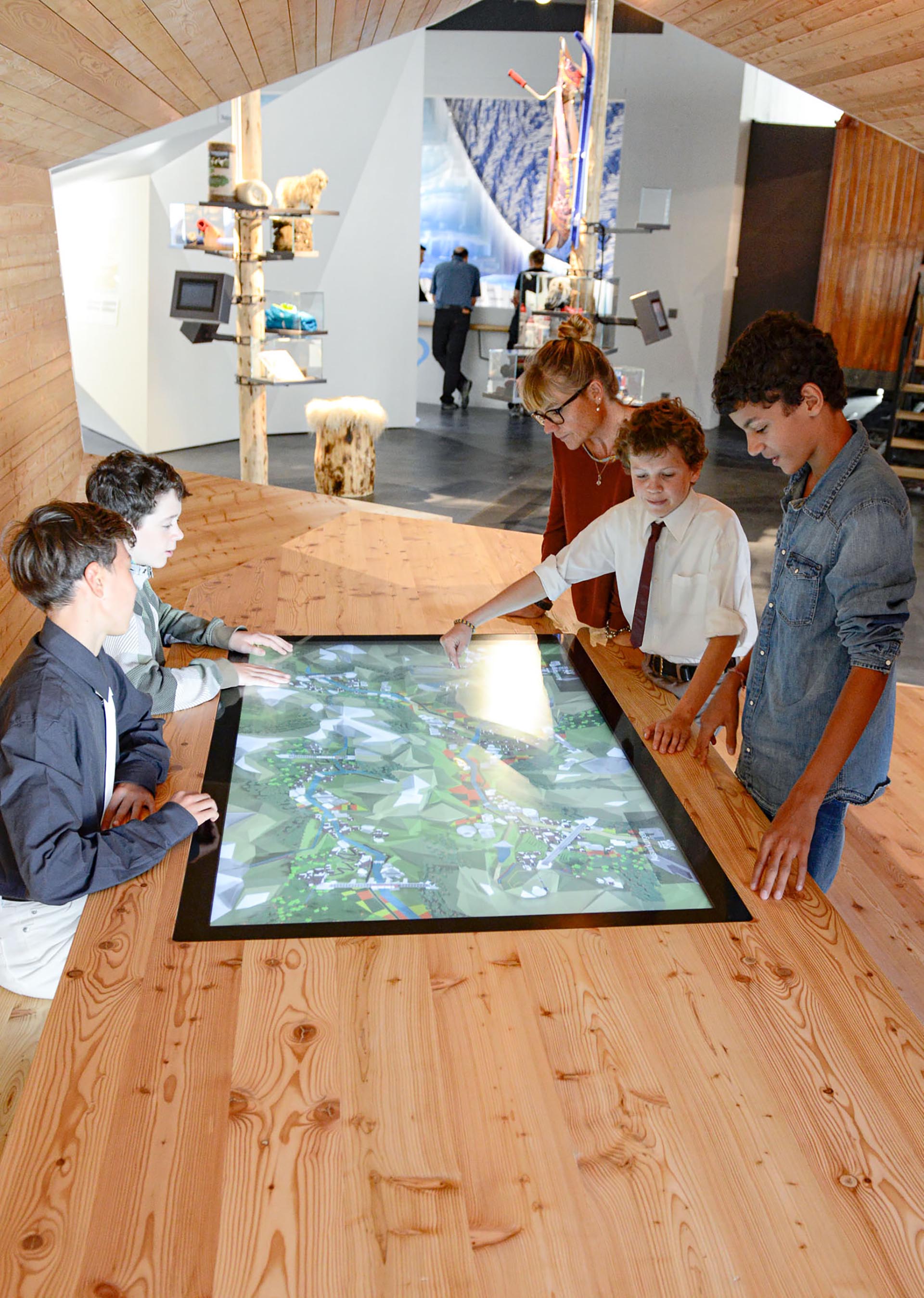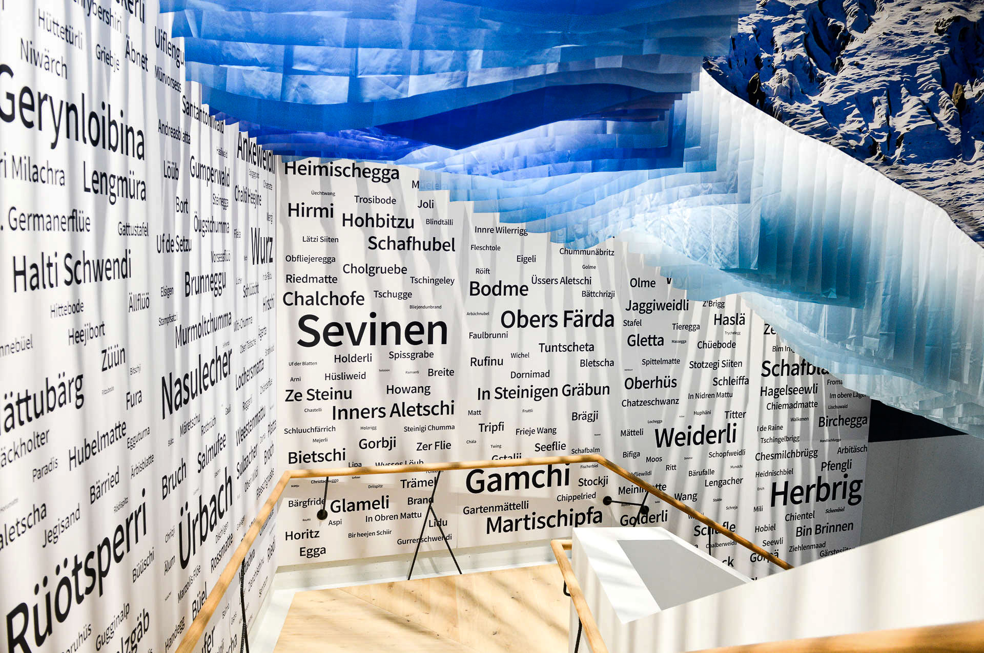 Der Jungfrau-Aletsch-Gletscher in der Schweiz wurde im Jahr 2001 in die Liste des UNESCO-Welterbes aufgenommen. In der Folge entstand in Naters auf 800m² das World Nature Forum mit mehreren Gebäuden. Eines davon beinhaltet im ersten Obergeschoss eine Ausstellung, die ein Besucherzentrum darstellt und die Besucher „rüstet“, sich dem Welterbe-Gebiet zu nähern. In der Ausstellung stehen analoge und digitale Interaktionen im Mittelpunkt. Verben, die menschliche Handlungen und Interessen ausdrücken, bilden die Storyline: Aufbrechen, Entdecken, Kultivieren und Diskutieren. Szenografie, Farbe und Materialität orientieren sich stark an den natürlichen Gegebenheiten des Gebiets. In abstrahierter Form wurde für jeden Bereich eine eigene Formsprache ausgearbeitet, die sich fließend ineinander entwickeln. Im ersten Ausstellungsbereich „Entdecken“ greift die Szenografie die Formen und Farben der gebirgigen, mit Eis überzogenen Landschaft auf. Im zweiten Bereich „Kultivieren“ wurde ein dichter Wald konzipiert. Die üppig bestückten Baumstämme ermöglichen ein flexibles Austauschen der Produkte. Die Diskussion findet in digitaler Form in einem abstrahierten Abusitz statt. Ausstellungsgestaltung: Alle Leistungsphasen laut HOAS