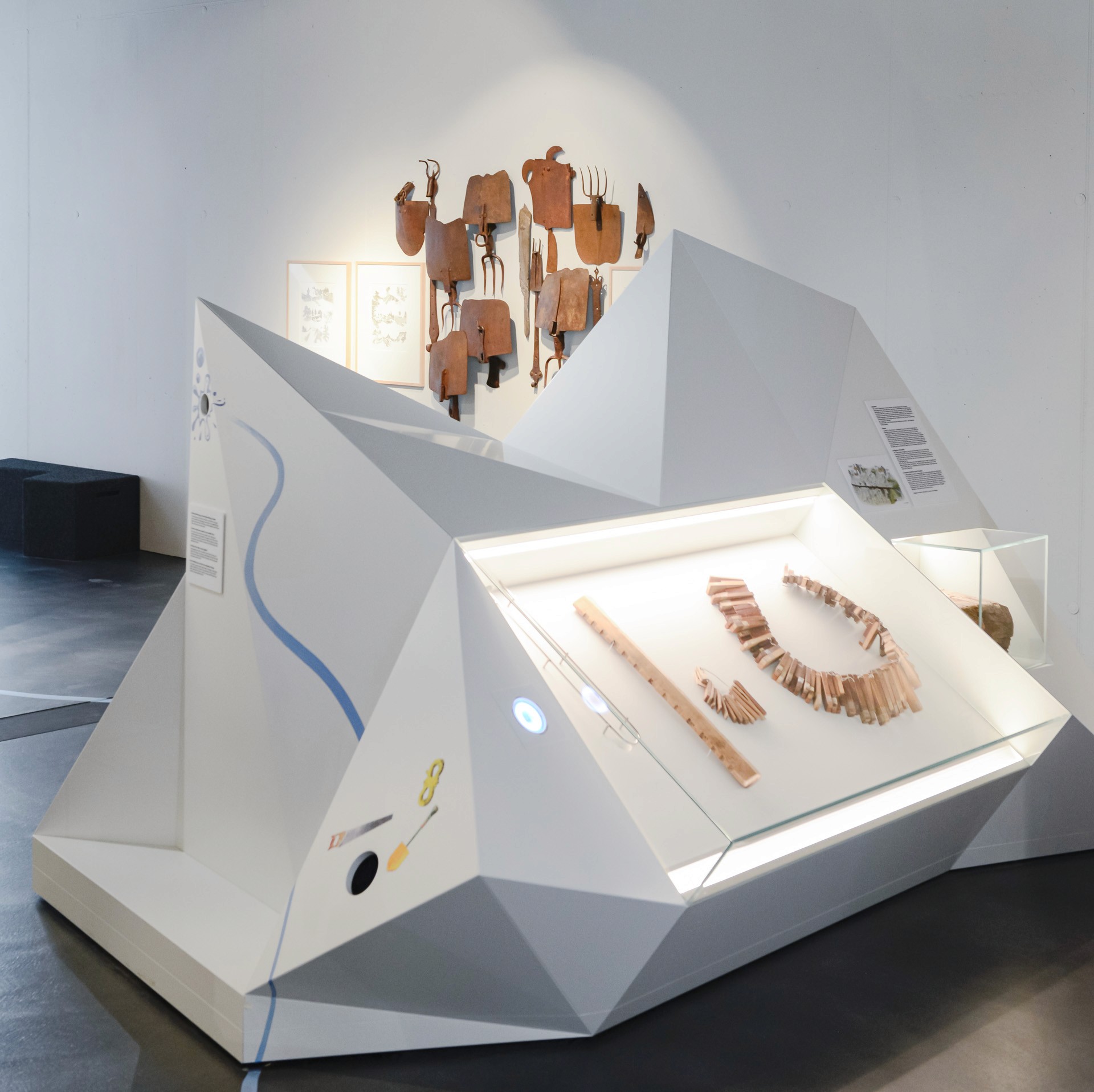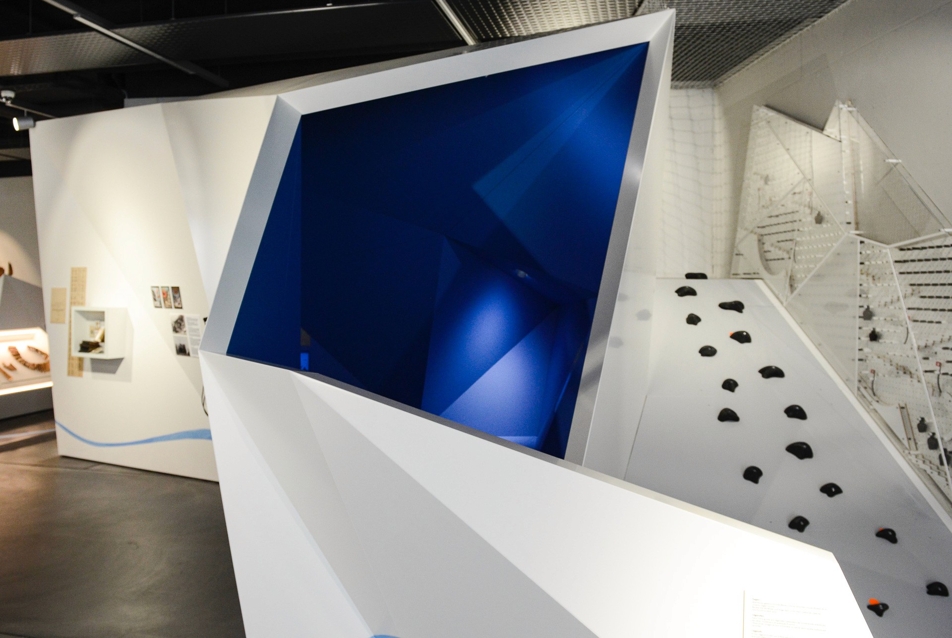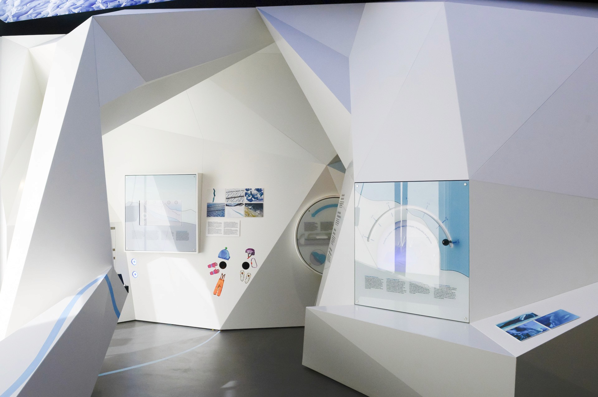 The Jungfrau-Aletsch Glacier in Switzerland was added to the UNESCO World Heritage List in 2001. As a result, the World Nature Forum was built in Naters on 800m² with several buildings. One of these contains an exhibition on the second floor, which is a visitor center and “equips” visitors to approach the World Heritage area. The exhibition focuses on analog and digital interactions. Verbs that express human actions and interests form the storyline: starting off, discovering, cultivating and discussing. Scenography, color and materiality are strongly oriented towards the natural conditions of the area. In an abstract form, a separate formal language was developed for each area, which flow seamlessly into one another. In the first exhibition area, “starting off” and "discovering", the scenography picks up on the shapes and colors of the mountainous, ice-covered landscape. In the second area, “Cultivate”, a dense forest was designed. The richly equiped tree trunks allow the products to be exchanged flexibly. The discussion takes place in digital form in an abstract abusitz. Exhibition design: All service phases according to HOAS